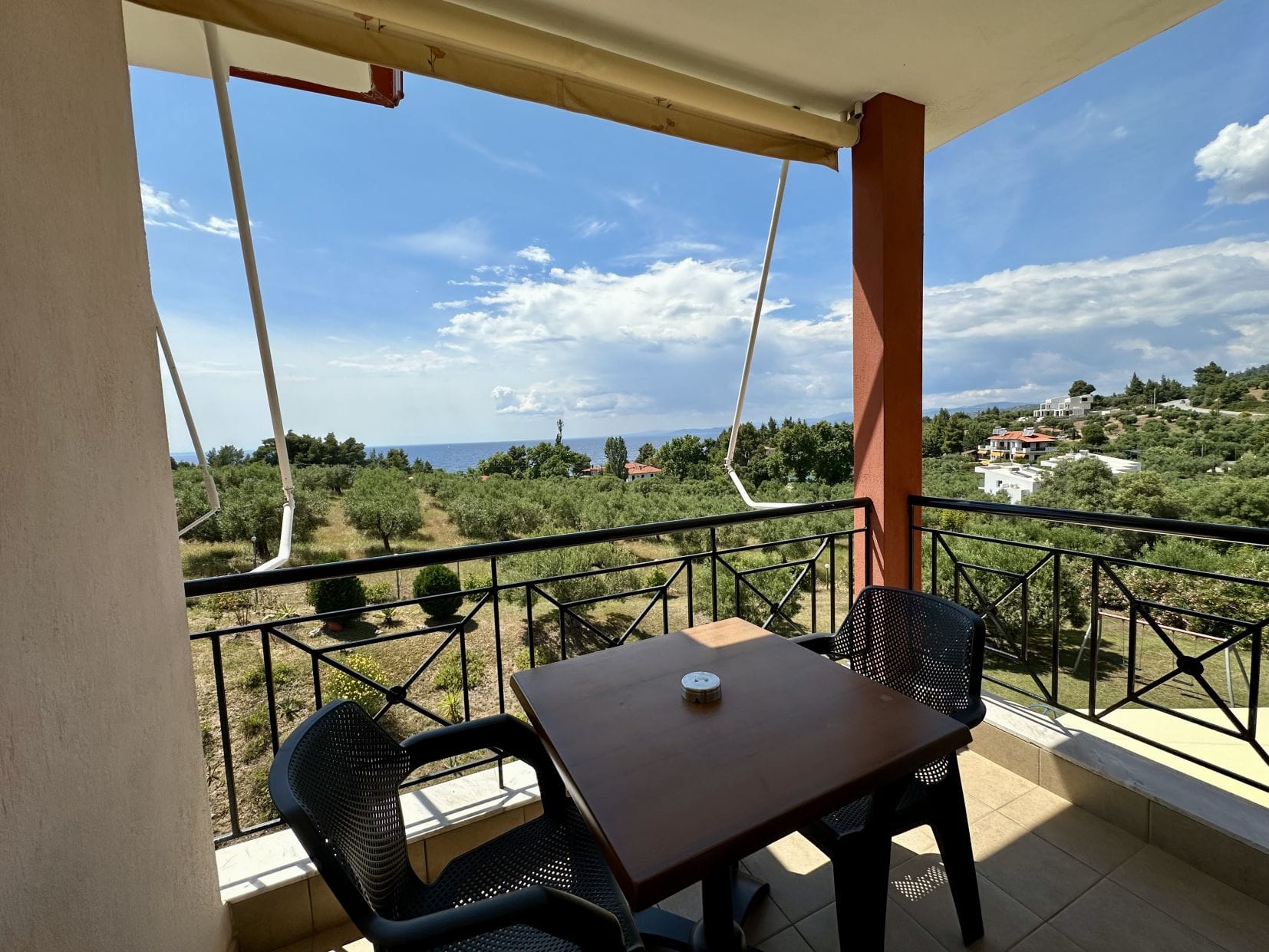 Βγείτε στο ευρύχωρο μπαλκόνι και θα σας υποδεχτεί το μαγευτικό τοπίο της Σιθωνίας, Χαλκιδικής.Αυτή είναι η όασή σας για να χαλαρώσετε και να απολαύσετε τη φυσική ομορφιά που σας περιβάλλει. Το μπαλκόνι προσφέρει το ιδανικό σκηνικό για να χαλαρώσετε και να απολαύσετε τη στιγμή, είτε απολαμβάνετε ένα δροσερό ποτό, είτε πίνετε τον πρωινό σας καφέ καθώς ανατέλλει ο ήλιος, είτε απολαμβάνετε ένα ήρεμο δείπνο κάτω από τον έναστρο ουρανό της Χαλκιδικής.